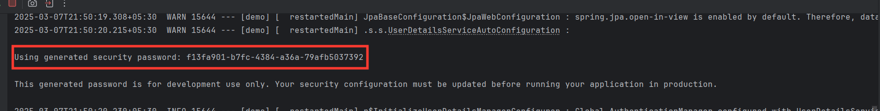 Using generated security password: 8a1f9c20-...