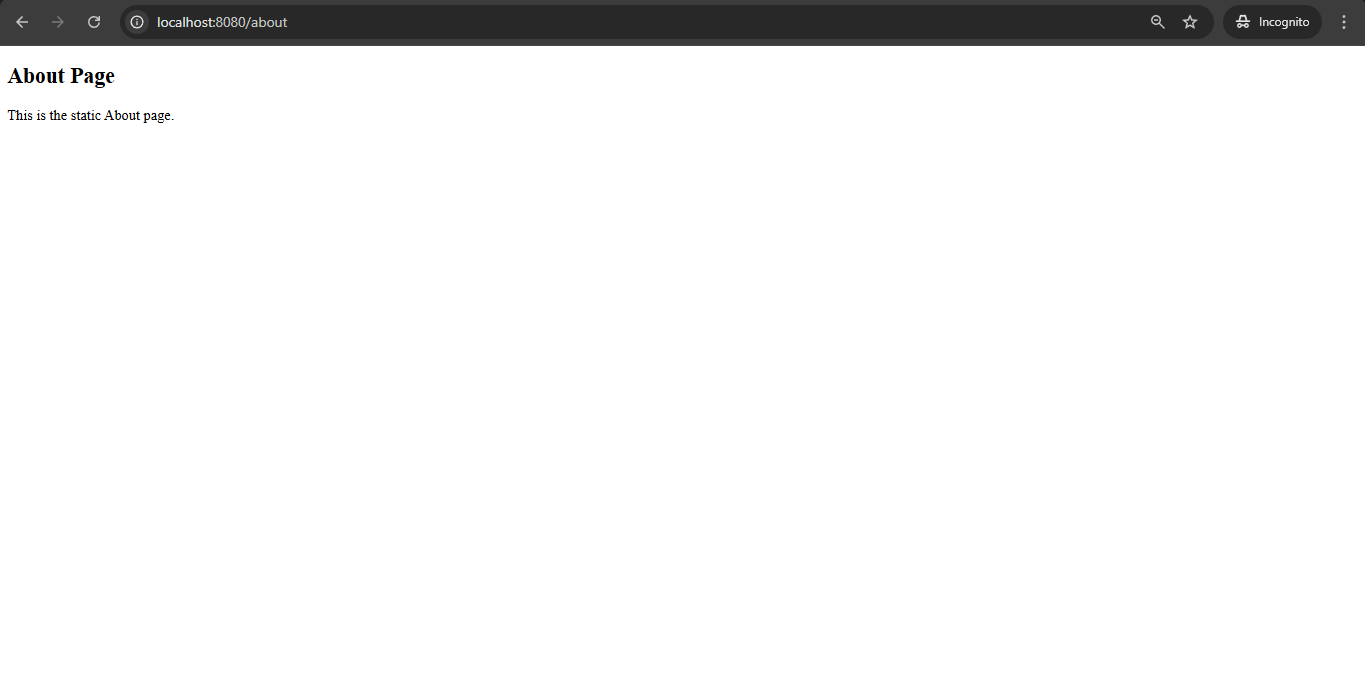 <h2>About Page</h2> <p>This is the static About page.</p>